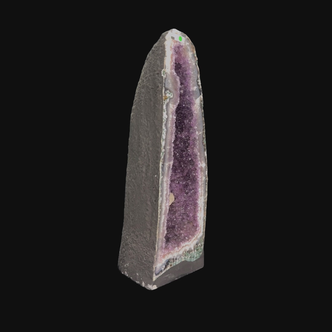 At 53 cm in height, this specimen is substantial yet balanced, offering both decorative versatility and collector’s appeal. Its shimmering interior reflects light beautifully, showcasing the clarity and saturation typical of high-quality Brazilian amethyst.