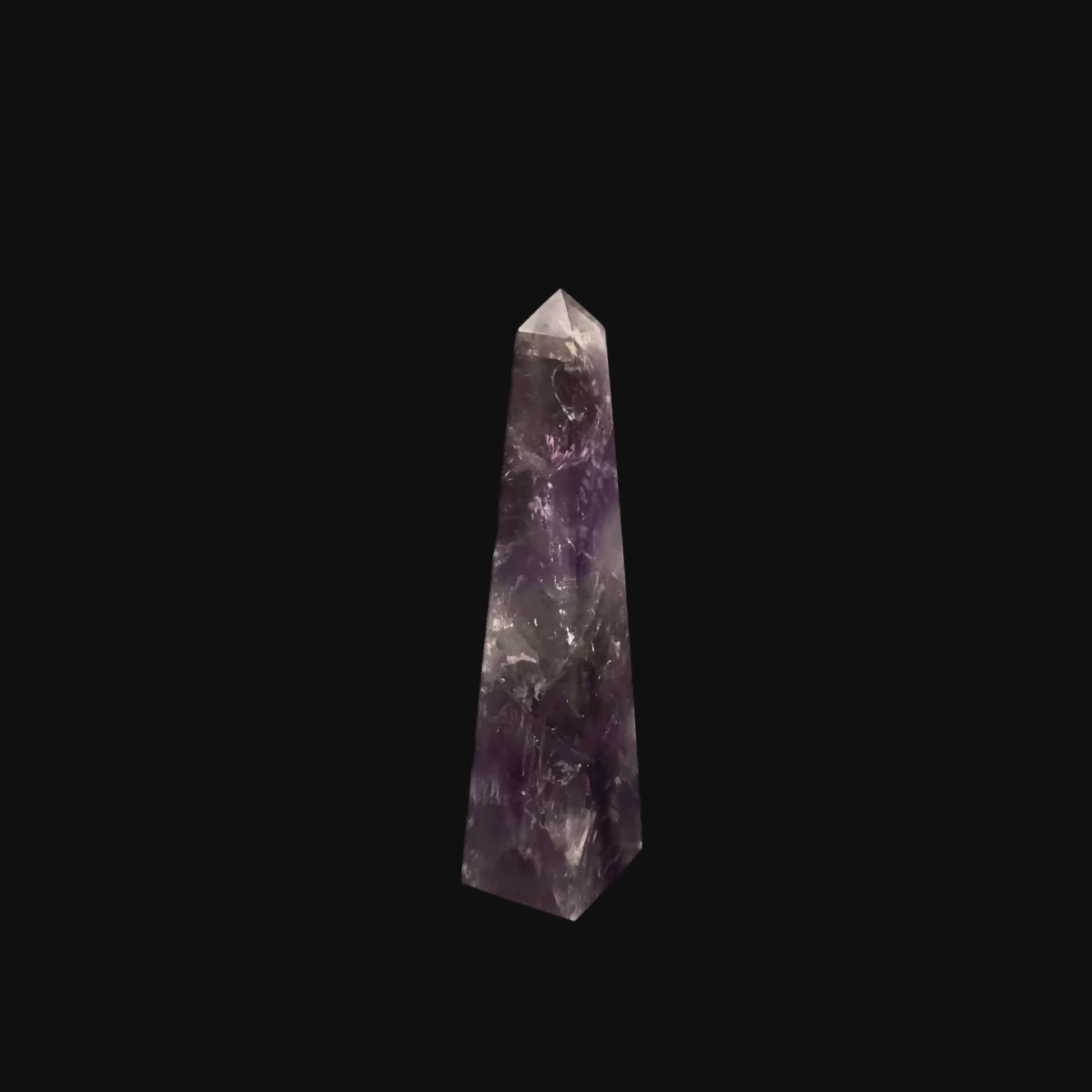 With a width of 4 cm and depth of 3.5 cm, this compact obelisk is ideal for display on shelves, desks, or within a crystal collection. Its minimalist design emphasizes the elegance and purity of the amethyst while providing a refined visual presence.
