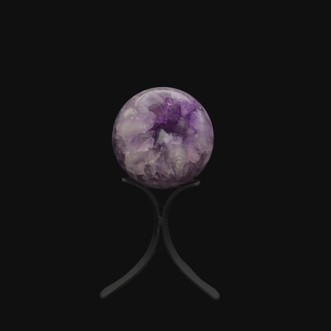 This amethyst sphere presents the intense violet hues and refined translucency of premium Brazilian amethyst. Perfectly polished into a smooth sphere, it reveals intricate crystal patterns and allows light to dance elegantly across its surface, emphasizing the natural brilliance of the stone.