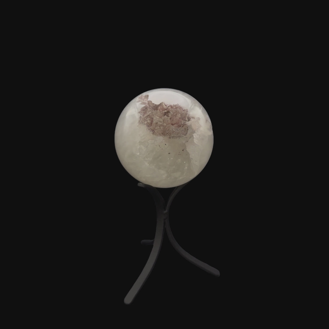This amethyst sphere presents soft lavender to whitish tones, enriched by natural mineral inclusions that create unique internal patterns. Its polished surface highlights the delicate interplay of color and texture, offering a refined yet organic appearance that makes each viewing angle distinct.