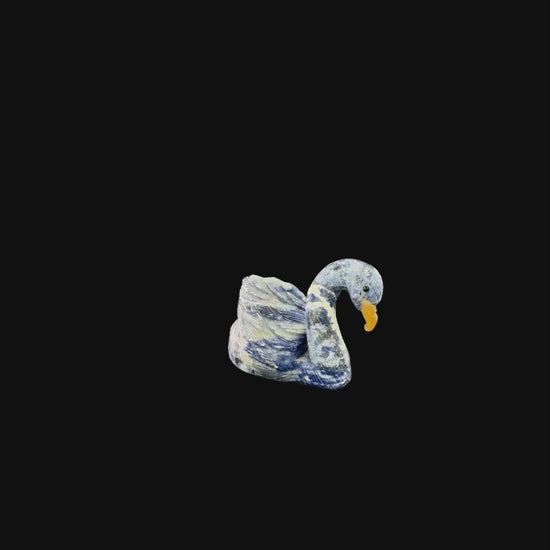 This charming blue swan carving is expertly sculpted from sodalite, with vivid blue tones and a smooth polished surface. The swan's distinctive orange calcite beak adds a touch of vibrant contrast, making the piece both visually captivating and unique.