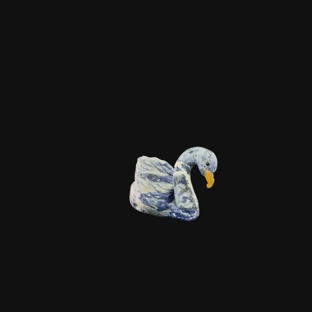 Measuring 11.5 cm in height, the carving is compact yet full of character, perfect for display on desks, shelves, or as a part of a decorative collection. The fluid, graceful lines of the swan capture the essence of elegance and nature, while the rich contrast between sodalite and calcite further enhances its artistic appeal.