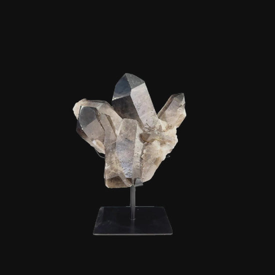 Hand-selected and prepared in Brazil, this one-of-a-kind smoky quartz cluster offers both geological authenticity and contemporary design appeal.